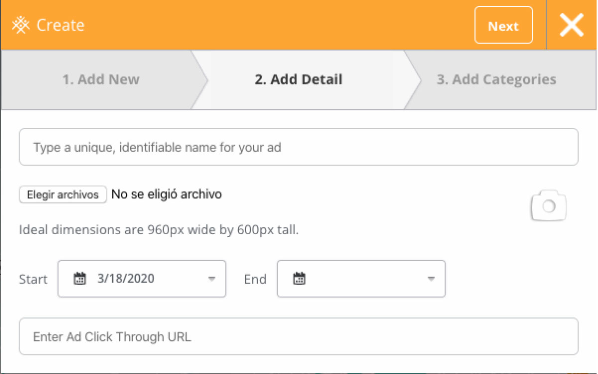 - Enter a name for the ad (only shows when viewing the list of ads running and on the mobile view of the ad)