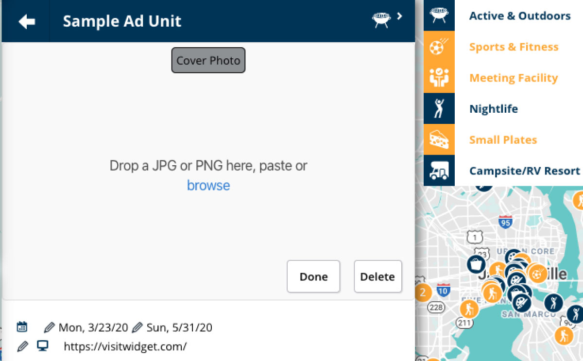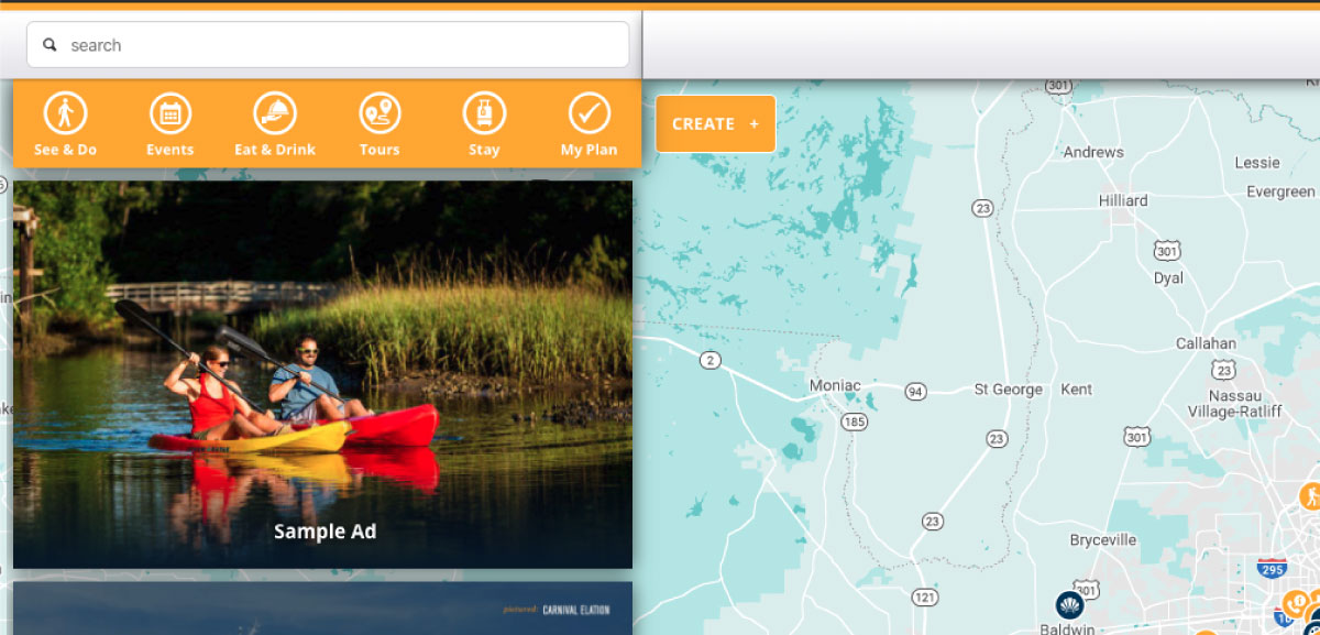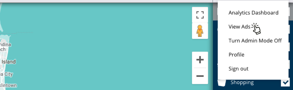 To create an ad unit, log in and make sure admin mode is turned ON. When it is on, you will see the Create+ button appear in the top left of the map.