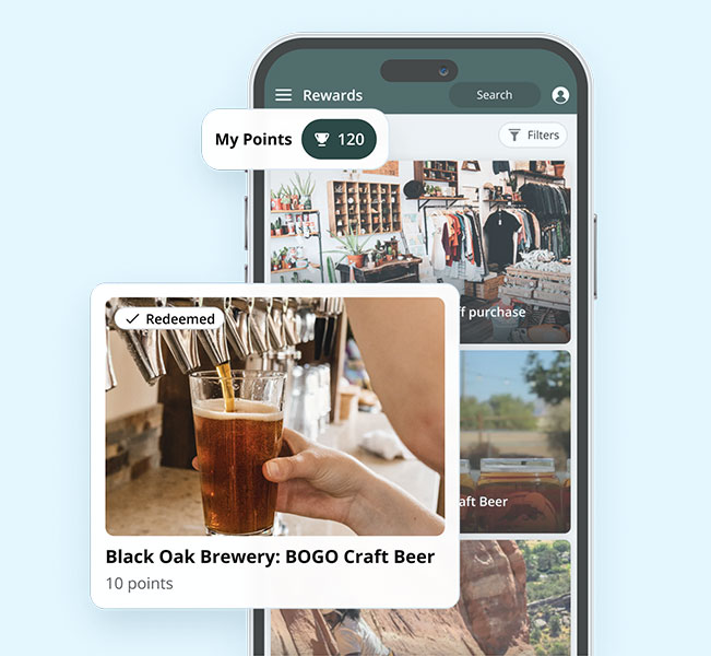 Gamified experiences drive more app downloads. For existing app users, take advantage of push, proximity & in-app messaging to get the word out. In turn local business owners reap the rewards via increased revenue.